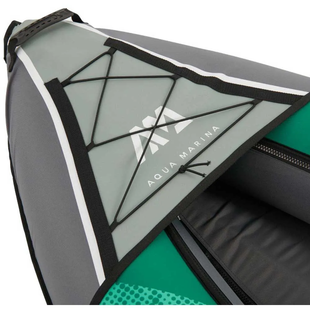 Kayak Aqua Marina LAXO 9´4´´is ideal for both beginners and advanced users for use on rivers and lakes. It was designed with a hard cone nose in the shape of letter V. The floor cover and top hull of side chambers are constructed of extra-strong polyester for great durability and rigidity. LAXO series come in 3 lengths (285cm/320cm/380cm), perfectly fit up to three people or provided a solo paddler with plenty of gear capacity for longer distance adventure.