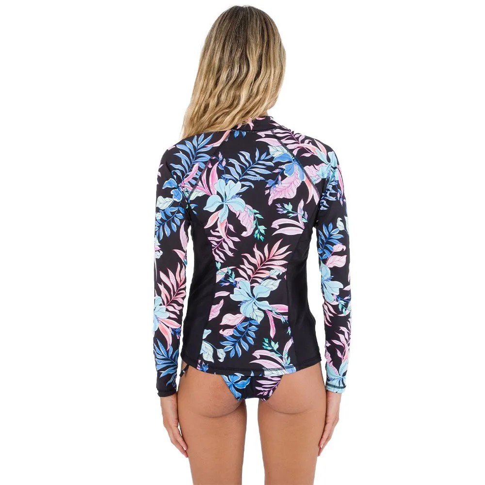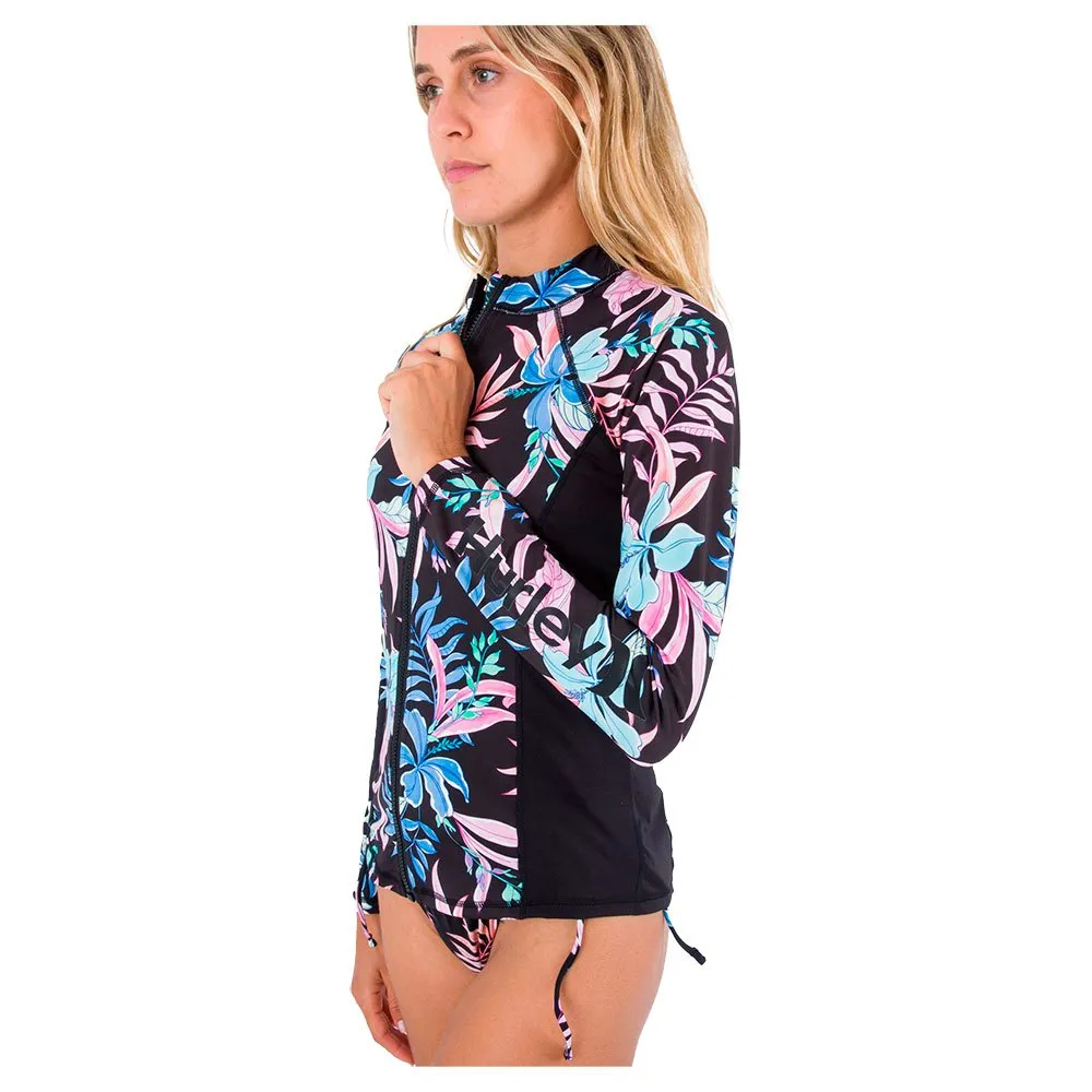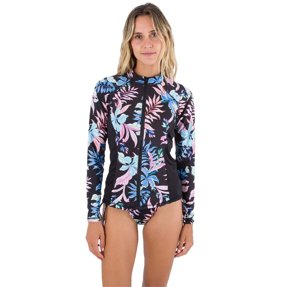 – Long sleeve raglan rashguard full-zip with color blocking side seam panels