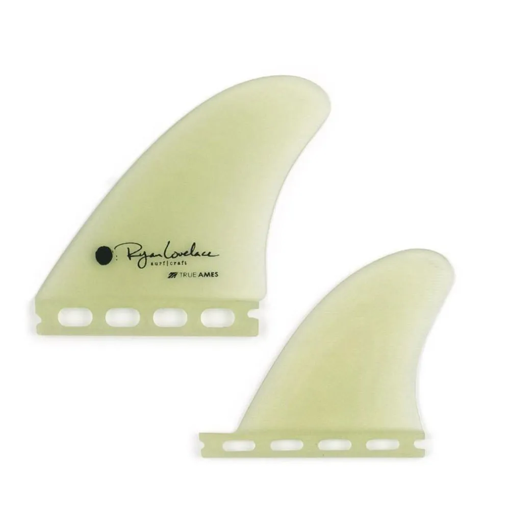 The Ryan Lovelace Piggyback Quad is a quad set with softer curves than usual, look for positive drive and flowy turns. This setup is meant to complement down the line surf by providing smooth transitions and speed from one turn to the next. Front fins are flat foiled and rear fins are 80/20 foil.