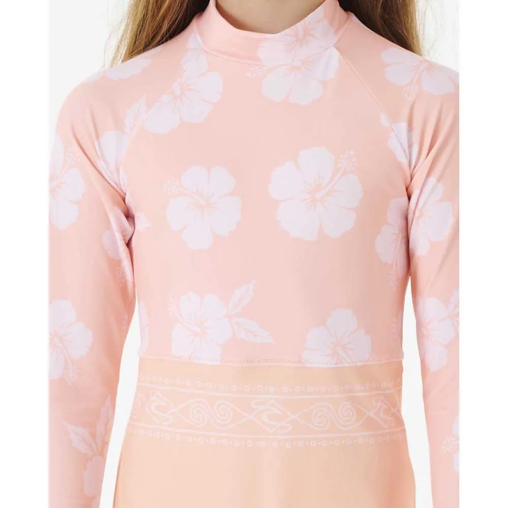 The Desert Waves Long Sleeve Surf Suit is a rad Rip Curl girl´s one piece swimsuit made for surfing, with epic floral yardage, featuring UPF50+ sun protection factor, a fully lined seat, and back zip. Made from Extra Life Microfibre Lycra that gives long-lasting comfort, fit and shape with no bagging or sagging.